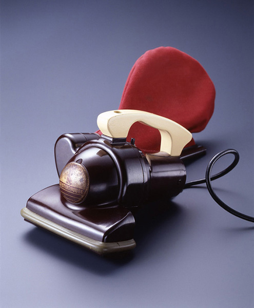 流線型機関車(ストリーム・ライナー)の傑作「20世紀号」からインスピレーションを得た小型電気掃除機。ニューヨーク・セントラル鉄道の20世紀号は、高速運転と全室個室の寝台車など、設備の豪華さで話題を集め、時代を象徴するモチーフとなった。冷蔵庫や掃除機は当時の電化製品の中でも一番の人気商品で、この掃除機では流行の流線型を初期のプラスチック“ベークライト”で成型している。