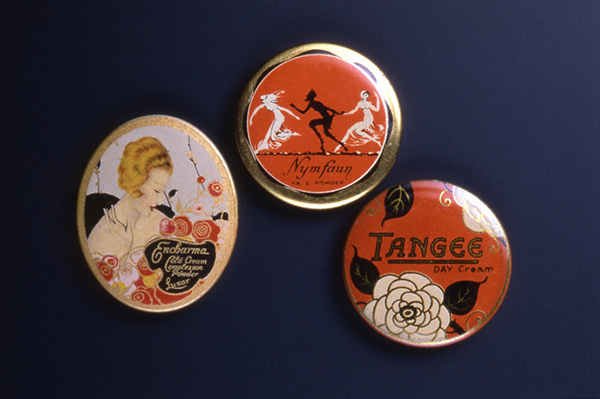 女性の社会進出やハリウッド人気から一般女性に化粧の習慣が広まったことで、1930年代、コスメティック産業は大きく発展した。自宅で使う化粧品だけでなく、外出先の化粧直しに携帯できる化粧品は身だしなみに気を使う女性の必需品となり、美しいパッケージデザインを施されたミニサイズのクリームケースやパウダーケースが次々と生産されていった。
