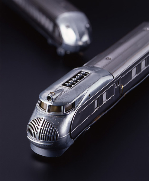 1934年2月にユニオン・パシフィック鉄道で導入された初の流線型列車「シティ・オブ・サライナ」号のOゲージモデル。動力車である先頭車両と最後部車両の丸いフォルムが特徴的で、3両編成。車体はジュラルミン製で全長62m、重量85tの大型車両だった。V型12気筒エンジンが積まれて出力は600馬力あったといわれ、カンザスシティ・サライナ間230kmを1時間半で結んだ特急列車に利用された。