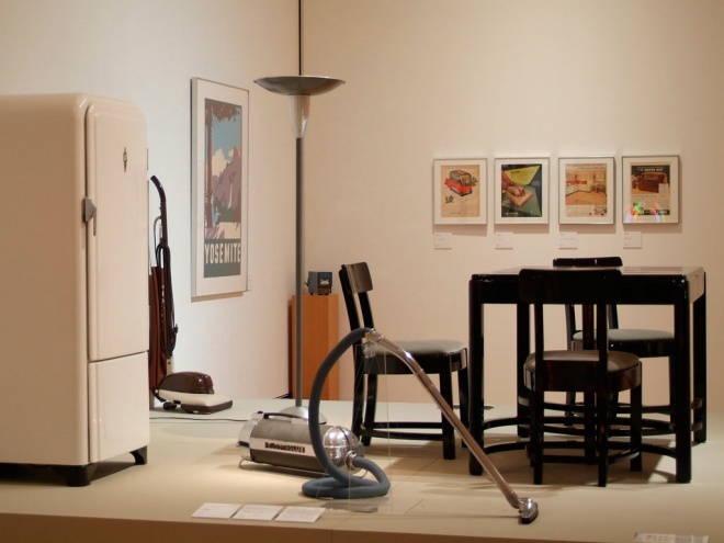 展覧会で対象とした時期、また国際デザインセンターのコレクションの大部分が制作されたのは、第一次大戦後に好況を迎えたアメリカが、1929年の世界恐慌から不況に落ち込んでいった時代である。この経済的にも大きく変動したアメリカで、現代の私たちの生活につながるモダンなライフ・スタイルが急速に広まり、洗練されていった。ラジオや冷蔵庫といった家電製品が普通の家庭にまで普及し、街には流線形の自動車が現れた。そして、レイモンド・ローウィやノーマン・ベル・ゲッデスといった工業デザイナーが華々しく活躍したのである。