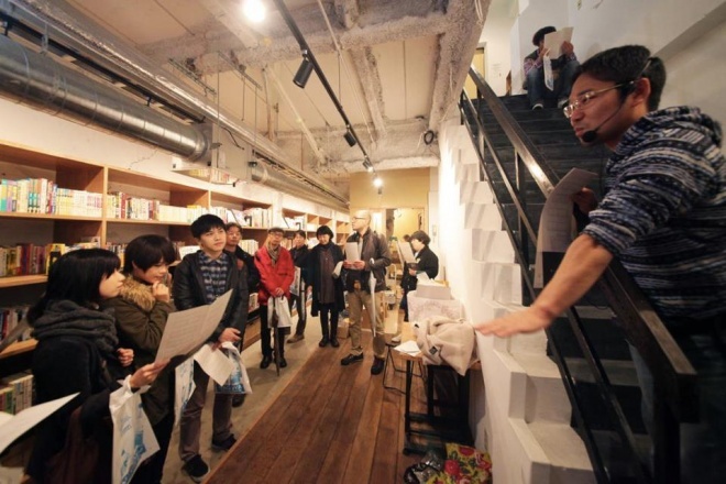 「あいちトリエンナーレ2010」でメイン会場のひとつだった長者町周辺を歩くツアー。「アートラボあいち」をはじめ、アートスペースやシェアスタジオのある「えびすビル」、「トランジットビルディング」を回り、ナディアパークのクリエイターズショップループを訪問。