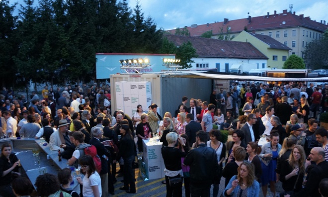 例年、約1ヶ月間開催されるこのデザイン月間は、創造性×経済を意識した大規模な展示会で、グラーツのユネスコCCN加盟後は、メインの展示にネットワーク加盟都市を招聘、今年は名古屋が、大きなスペースの提供を受け展示を行うこととなった。折しも、グラーツのFHヨアネウム応用科学大学の学生が「デザイン都市・名古屋」をリサーチし展示紹介しようというプロジェクトが企画されており、クリエイティブ・デザインシティなごや(CDCN)ではこの機会をとらえ、名古屋の5大学との合同プロジェクト「garanagプロジェクト」(2012年7月~)として進めることで、この展示が単に展示にとどまらない若手人材の交流・育成の機会となるよう後押しした。