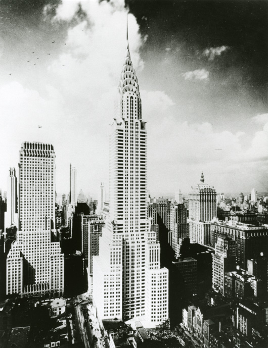20世紀初頭、ヨーロッパをはじめに流行を見せたデザインスタイル「アール・デコ」は、1920年代後半から30年代にかけ、経済発展を遂げたアメリカにおいて新しい要素を取り込み、全世界に広がりを見せました。幾何学表現を特徴とするアール・デコ様式の中でも、当時ニューヨークに続々と登場した高層ビル群、摩天楼の形状を取り入れた階段状の“ジグラット・パターン”は、シンプルでありながら力強く、それまでの曲線的なアール・ヌーヴォー・スタイルを一新するデザインの一つとなりました。天にも届かんばかりに高さを競っていた高層ビル群は空をこするほど高い“スカイスクレーパー”(摩天楼)と呼ばれ、当時の新しい技術、新たな都市生活の象徴でもあったのです。