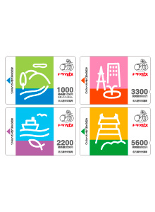 名古屋市営地下鉄プリペードカード「ユリカ」のデザイン展開。金額別に4種類のデザインを開発。名古屋市内の観光名所などをシンプルに線描きし、色分けすることで、カードの差別化・視認性を高めました。