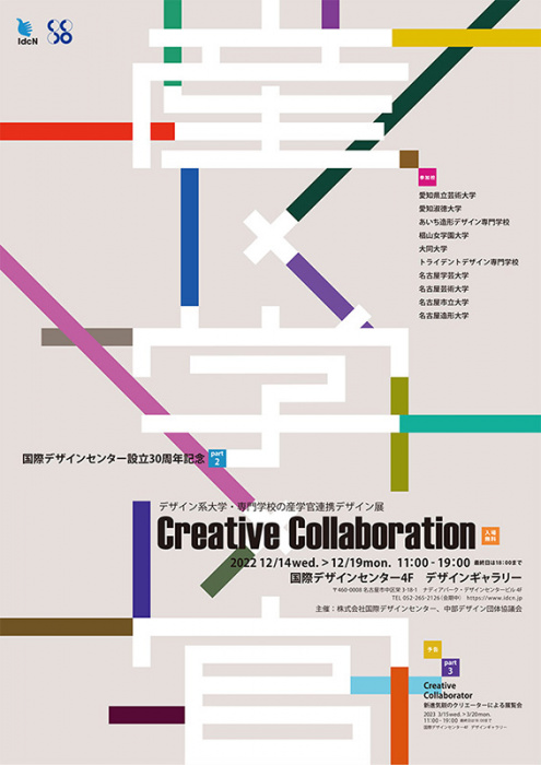 ■参加校=愛知県立芸術大学、愛知淑徳大学、あいち造形デザイン専門学校、椙山女学園大学、大同大学、トライデントデザイン専門学校、名古屋学芸大学、名古屋芸術大学、名古屋市立大学、名古屋造形大学