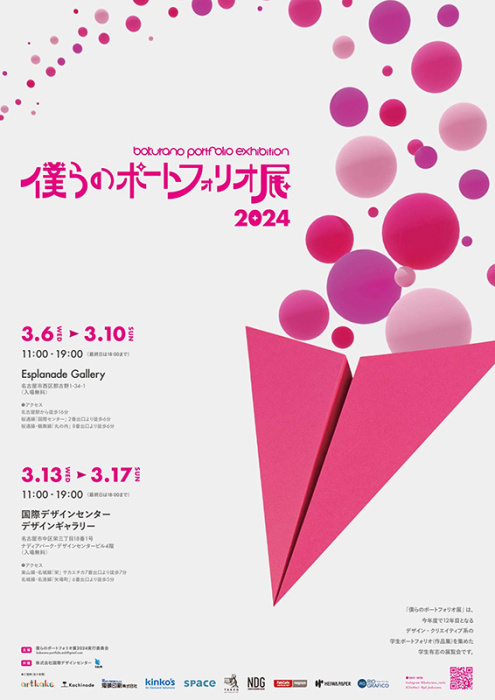 問い合わせ先 僕らのポートフォリオ展2024実行委員会 bokurano.portfolio.exb@gmail.com、デザインギャラリー(会期中会場専用tel052-265-2126)