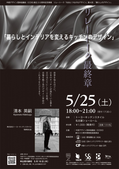 中部デザイン団体協議会(CCDO)は、名古屋圏のデザイン分野の振興を目指し、1988年7月、異分野のデザイン団体が集結して設立。創立30周年を記念し、「社会とつながるデザイン」を全体テーマにさまざまな事業を実施する一環として、加盟11団体が広告・編集系、製品系、空間演出系、空間系の4つの領域に分かれリレートークを開催しています。