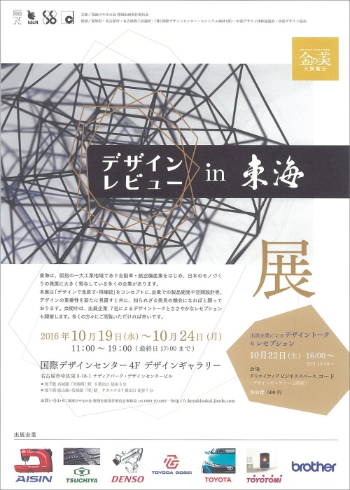 東海地域は屈指の一大工業地域であり、自動車・航空機産業をはじめ日本のモノづくりの発展に大きく寄与している多くの企業があります。「デザインレビューin東海」は「デザインで見直す・再確認」をコンセプトに、企業での製品開発や空間設計等、デザインの重要性を新たに見直すとともに、発見の機会になればと願い開催されます。