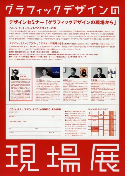 広範な販売促進計画に基づいて行われる広告・広報活動等、グラフィックデザイン制作など、デザイン事務所の現況と今後のデザイン界のあり方・課題等について、デザイナーでデザイン事務所経営者の3講師が豊富な事例をまじえ、リレートークとディスカッションを行う。踏み込んだトークが展開され、ふだん目にするビジュアル作品が誕生するまでの試行錯誤や、クライアントとの苦労話など、制作現場からの生の情報が好評。