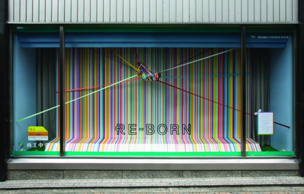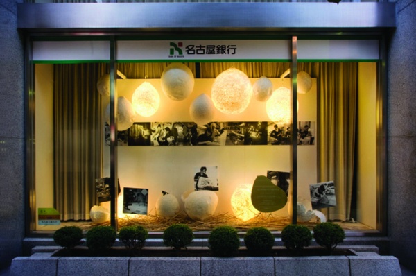 デザインを学ぶ学生たちが名古屋市内中心地の金融機関などのウインドーディスプレイを制作。平成元年の世界デザイン会議の開催を記念して10月に設定された「デザインウィーク」の期間、約1ヶ月の間、街の魅力づくりを図ります。