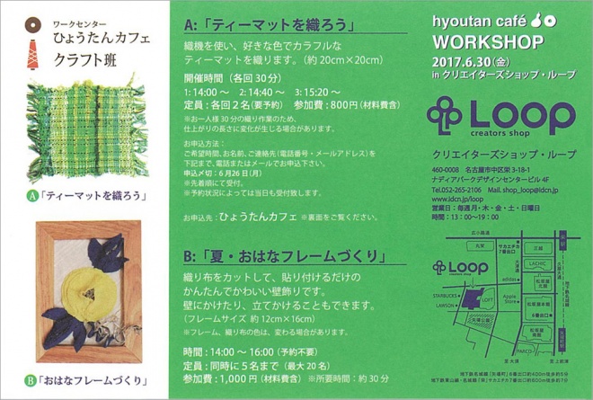 ■申込先:ワークセンターひょうたんカフェtel052-485-4535、hyoutan@hyoutan-cafe.jp
