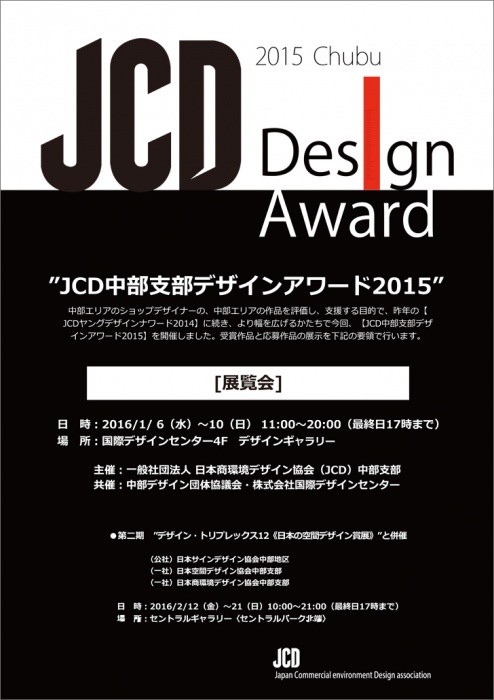 一般社団法人日本商環境デザイン協会中部支部(facebook) JCD中部支部デザインアワード2015概要 JCD中部支部デザインアワード2015全体概要 |