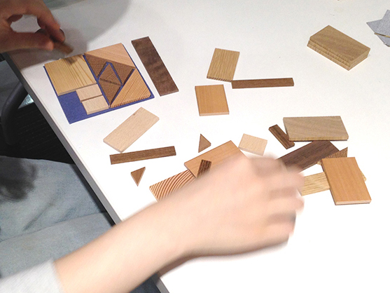 木工ミニワークショップはフェルトのカラーと樹種を選んでオリジナルのコースターを作るもので、フェルトに木を張り付けていくだけの簡単な作業なので、お子様もお気軽にご参加いただけます。