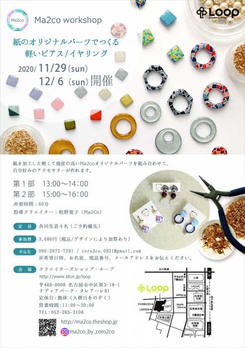 Ma2co Workshop:紙のオリジナルパーツでつくる軽いピアス/イヤリング(12月6日)(イベントスケジュール)
