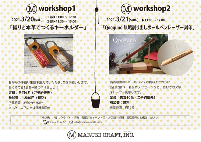 問い合わせ先 クリエイターズショップ・ループtel052-265-2106、マルキクラフトtel0564-73-3232、info@maruki-craft.com
