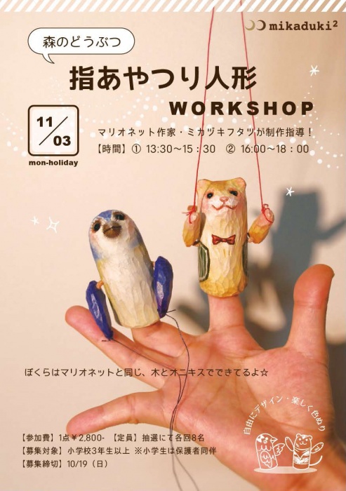 ミカヅキフタツ「森のどうぶつ・指あやつり人形」ワークショップ