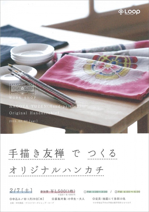 - 中村商店ワークショップ「手描き友禅でつくるオリジナルハンカチ」