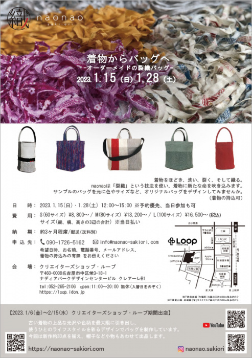 naonao「着物からバッグへーオーダーメイドの裂織バッグー」(1月15日)(イベントスケジュール)
