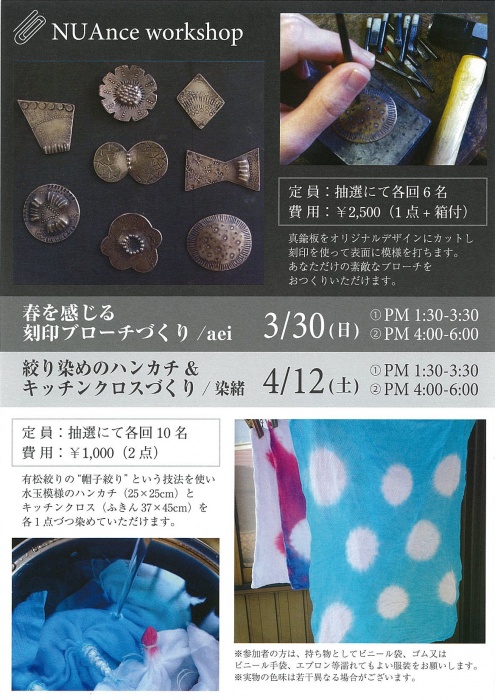 NUAnceワークショップ「染緒 泉奈穂—絞り染めのハンカチ&キッチンクロスづくり」