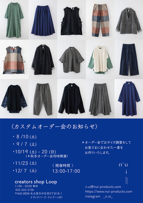 問い合わせ先 クリエイターズショップ・ループtel052-265-2106、n’ui n.ui@nui-products.com