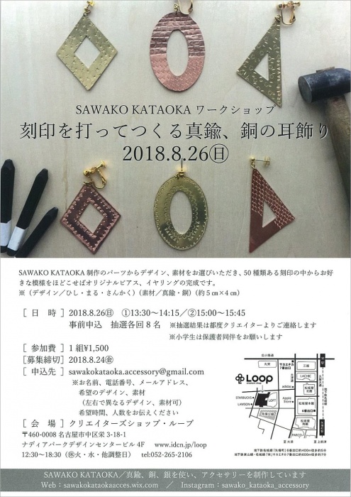 | 問い合わせ先 | クリエイターズショップ・ループtel052-265-2106、SAWAKO KATAOKA sawakokataoka.accessory@gmail.com |