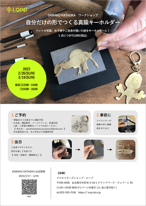 - SAWAKO KATAOKA ワークショップ「自分だけの形でつくる真鍮キーホルダー」