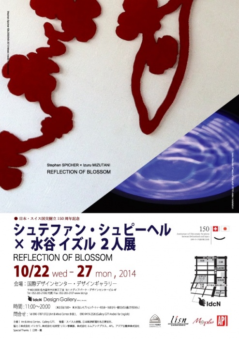 シュテファン・シュピーヘルは本展のために特別に制作した金属板にペイントを施した《BLOSSOMシリーズ》約11点を展示します。また水谷イズルは代表作《Tears of the Sky》(ヴィデオインスタレーション)、そしてサウンドアーティスト日栄一雅とのコラボレーション作品《SHIFT》、さらにステンレスを使った新作も発表する予定です。本展は優れた技術を持つ「もの作りの県」でもある愛知の企業と世界的なアーティストによるコラボレーションというユニークな試みでもあります。本展は、日本とスイス、西洋と東洋二つの芸術の花が互いに反映しあい、2つの文化がさらに新しい花を咲かせるきっかけになることを望み、開催されます。