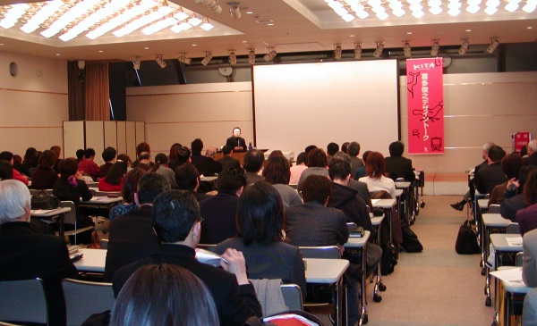 「The Soul of design」にこめられた喜多氏の思い、デザインポリシーが熱く語られ、学生のために、最近のアジア(台湾、韓国、中国など)のデザイン動向、特に同世代の若者たちがいかに熱心に取り組んでいるかが紹介され、また日本のデザインと産業界が抱える問題とこれからめざすべき方向性についての貴重な提言がなされた。