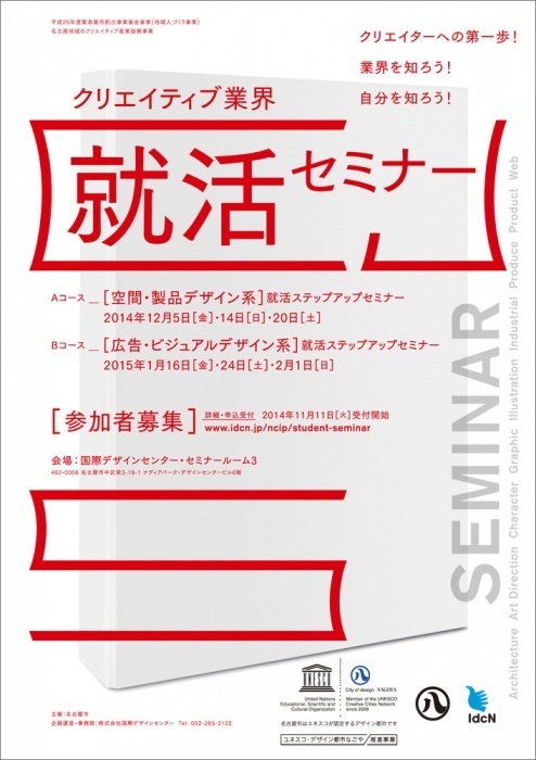 A-1[空間・製品デザイン系]就活ステップアップセミナー(イベントスケジュール) https://2024.idcn.jp/archives/custom_event/student-seminar-a-1205 クリエイティブ業界就活セミナー https://2024.idcn.jp/ncip/student-seminar/ |