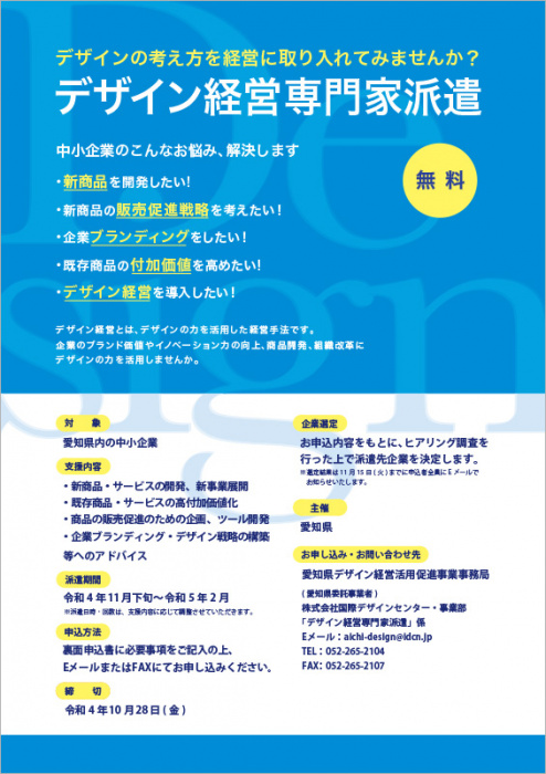 問い合わせ・申し込み先:愛知県デザイン経営活用促進事業事務局(愛知県委託事業者)