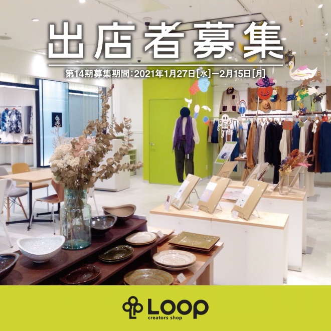 クリエイター創業支援スペース「クリエイターズショップ・ループ」(Loop)の第14期(2021年4月22日(木)オープン)に向け、出店者募集が始まります!