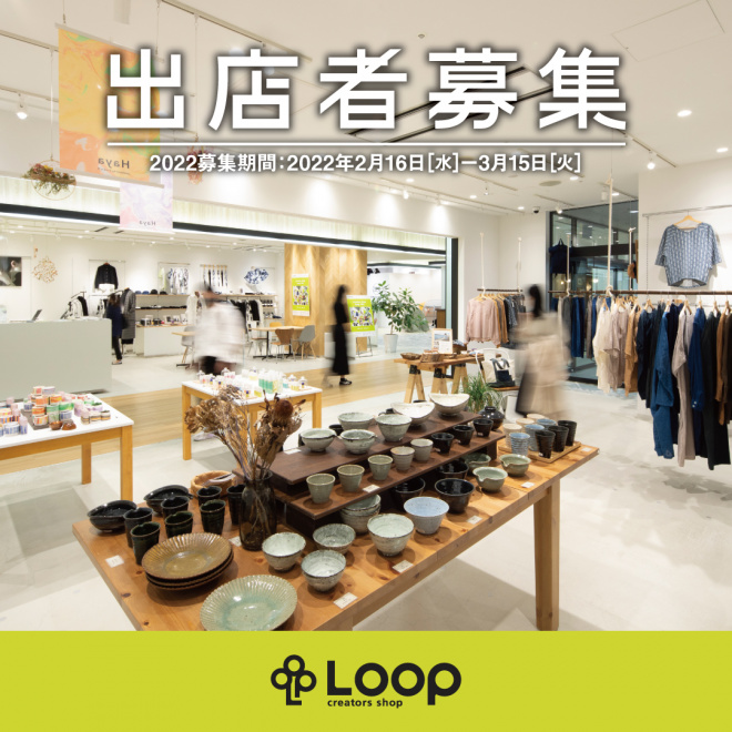 クリエイター創業支援スペース「クリエイターズショップ・ループ(Loop)」2022(2022年4月29日(金・祝)オープン)に向け、出店者募集が始まります!