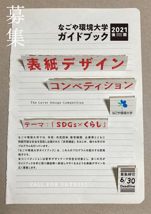「なごや環境大学ガイドブック2021後期」の表紙デザインの募集が始まっています。