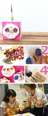 今回は、クリエイターと一緒に、ぽんめのこならではのデザインから2015年の干支でもある「羊」をモチーフに、可愛いカード立てをつくります。羊の角やウッドビーズをお好みの色から選び、顔、角に刺繍をほどこし、あなただけのカード立てをつくりませんか?