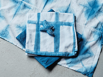畑から染料づくり、染めまでを一貫して行う藍の工房です。伝統的な藍を伝え、残し、アップデートし続けることを理念に、常滑焼の甕、知多木綿や愛知の酒、灰などを使って、土地に根づき暮らしに寄り添うものづくりをしています。