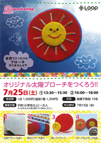 ぽんめのこワークショップ「オリジナル太陽ブローチをつくろう!!」