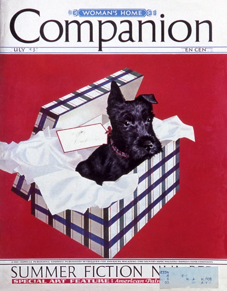 This issue of Women’s Home Companion features a Scotch Terrier, a pet that enjoyed enormous popularity at the time, thanks to the fact that President Roosevelt, well-liked for his efforts to help the United States recover from the Great Depression, owned a Scotch Terrier himself.