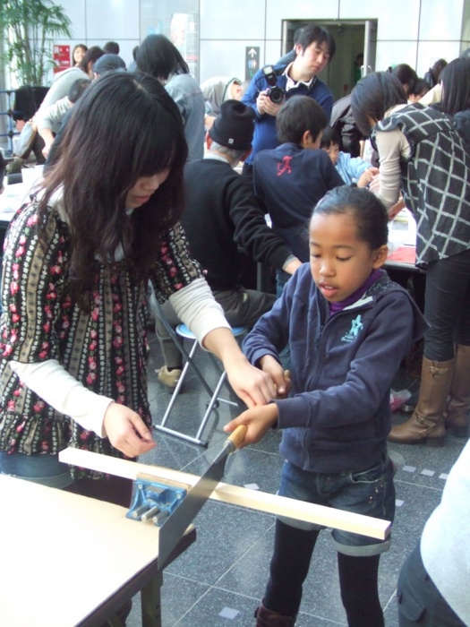 Following the plan of these two members of the Chubu block, the Chubu Design Association (CDA) and the Japan Industrial Designer’s Association (JIDA), we held a design exhibition and a workshop for families. At the design exhibition were displayed Kids Design objects created by members of CDA and JIDA as well as by students of twelve colleges that are members of CDA and JIDA in the educational realm. On the Sunday during the exhibition period, a family design workshop was held. Targeting kids from 4 to 12 and their parents/guardians, this design workshop provided hands-on experiences for the family. A lottery was held to choose ten groups for every lecture, for a total of 50 groups of participants. Maximum student: lecturer ratio was 8:1.