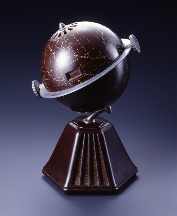 Radio designed by Raymond Loewy. Futuristic motifs reminiscent of the universe such as Earth and Saturn gained popularity.