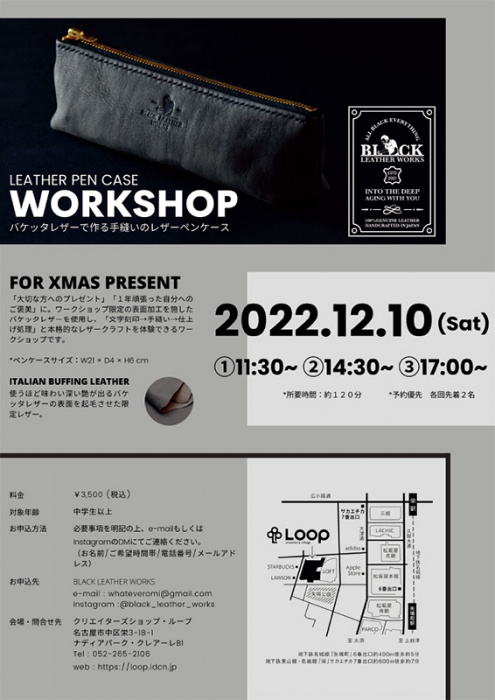 This time, “BLACK LEATHER WORKS” which appears from November 25 to January 4 in the 2022 session, will hold a workshop to make a pen case using vachetta leather with a workshop-limited surface treatment.