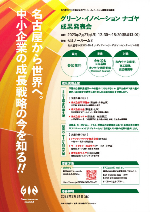 "Green Innovation Nagoya" Results Presentation (Flyer PDF) |