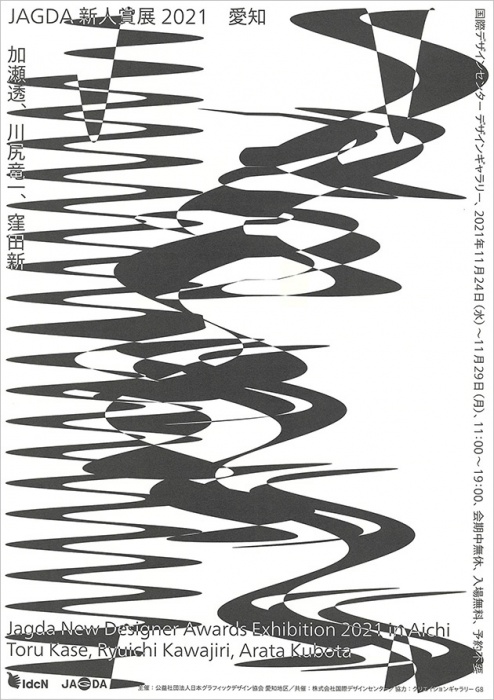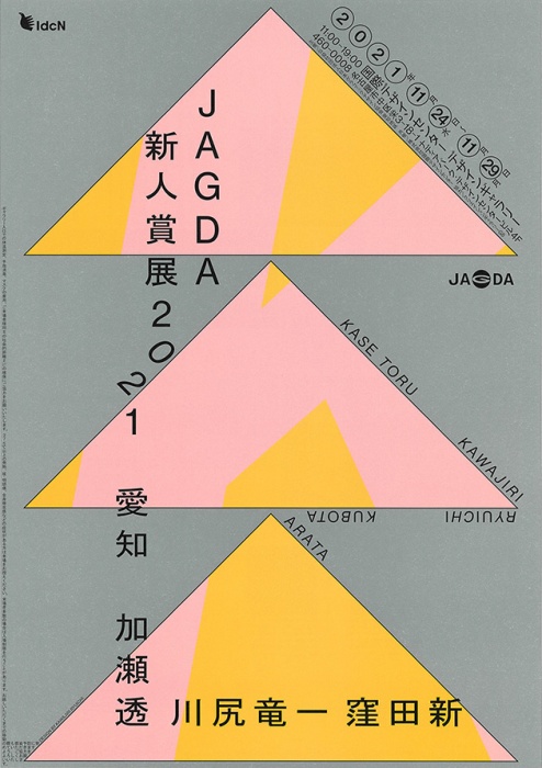 JAGDA New Designer Awards Exhibition 2021 Aichi: Toru Kase, Ryuichi Kawajiri and Arata Kubota (Flyer image)