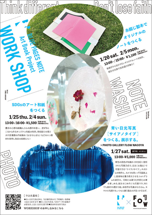 This time, “BLUE PAGES NOTE Art Book Project” which appears from January 6 to February 15 in the 2023 session holds workshops on making art washi paper. The process of making original washi paper begins with mixing the raw materials provided by the Obara washi craftsmen in Toyota. You can make your own design using eco-friendly materials such as leftover thread from Arimatsu shibori and dirty and damaged books from libraries.