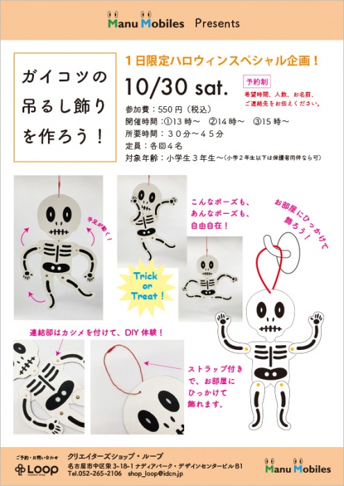 This time, “Manu Mobiles” which appears from October 5 to November 14 in the 14th session will hold a workshop to make a skeleton mobile as a Halloween special event.
