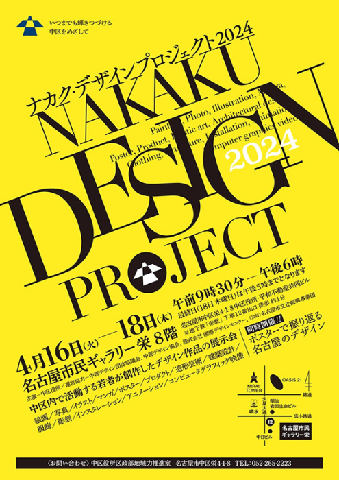 “Nakaku Design Project 2024” is a platform to disseminate the artistic activities of young people in Naka-ku, Nagoya. This project aims to raise awareness of design, deepen ties between schools and related organizations, and create a culture that understands and values the importance of design by providing opportunities for students to present their initiative and for related organizations to communicate and interact through design. Design works on the themes and motifs such as the scenery, impressions and future images of Naka Ward will be exhibited.