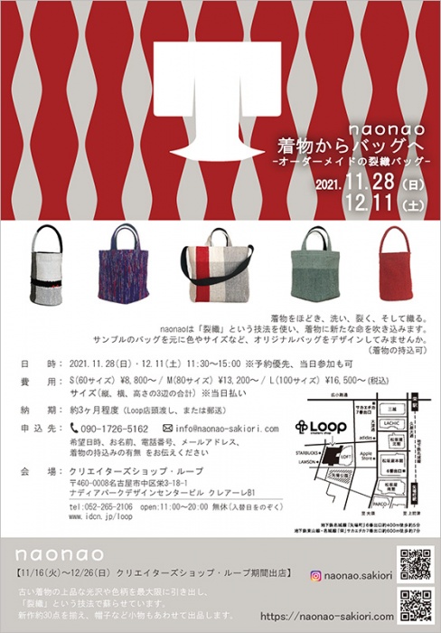naonao Order Event: Making over a Kimono into a New Bag -Made-to-Order Sakiori Bag- (November 28) (Event Schedule)