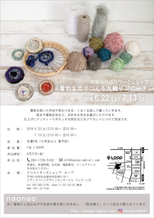 Related content(s) naonao Workshop: Making a Circular Weaving Brooch with Kimono Fabric (June 22)(Event Schedule)